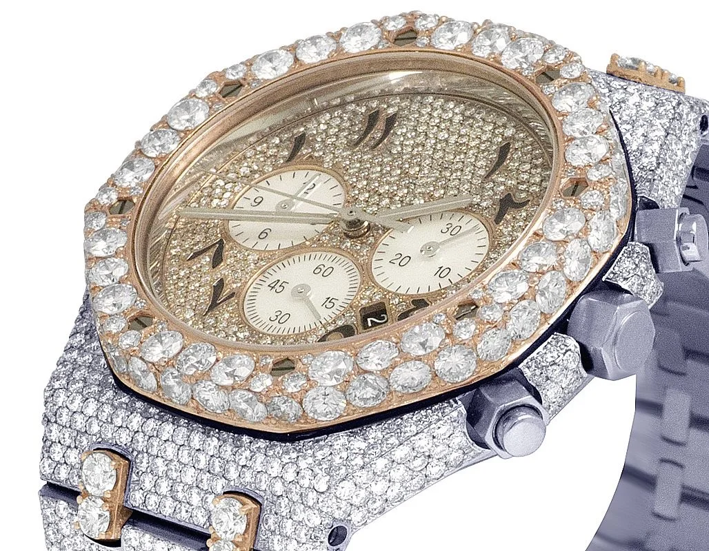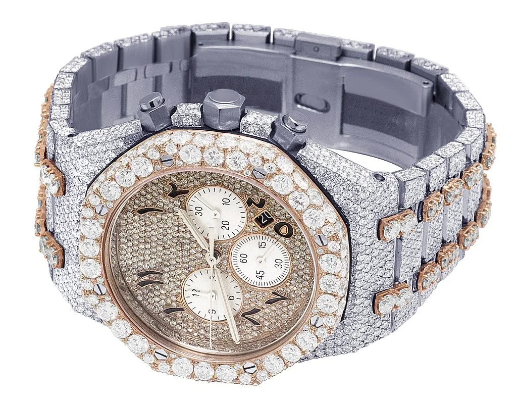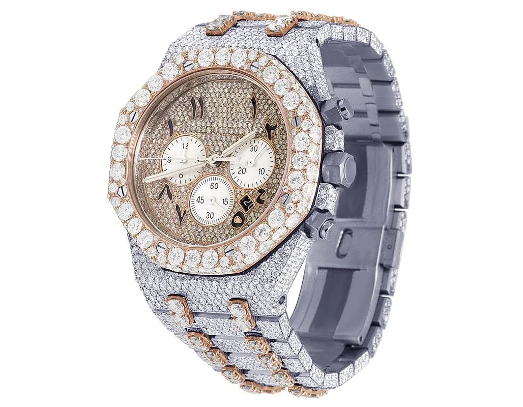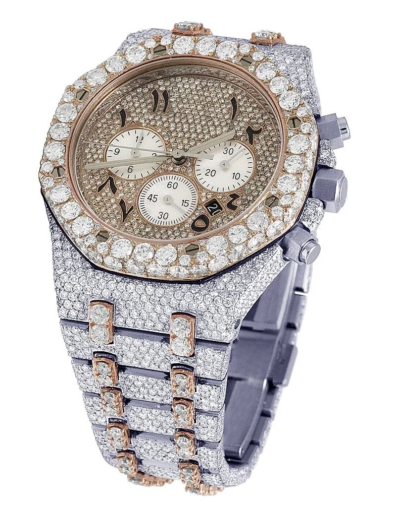Luxurious Diamond Watch, Full Iced Out Band Customised Hip Hop Wrist Watch, Chronograph Rapper Style Diamond Watch